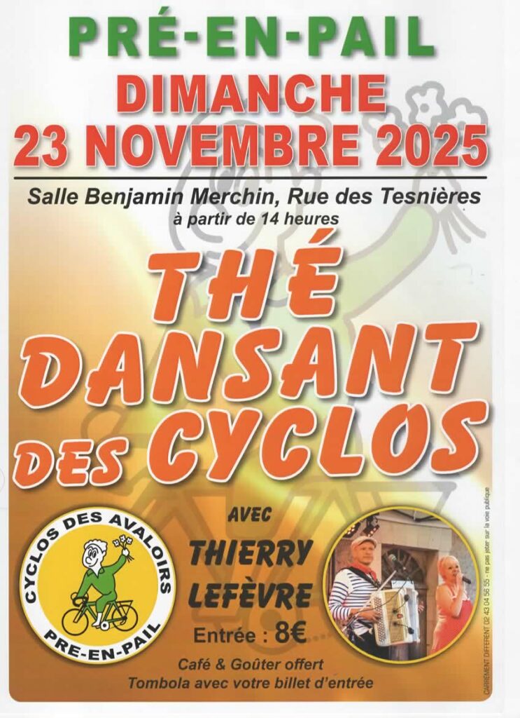 Avis à celles et ceux qui veulent s’évader au rythme de l’accordéon de Thierry, voir à celles et ceux qui ne savent sur quel pied danser, vous pouvez compter sur le club des Cyclos des Avaloirs pour vous faire vivre une parenthèse “endiablée” à faire oublier l’hiver qui arrive…