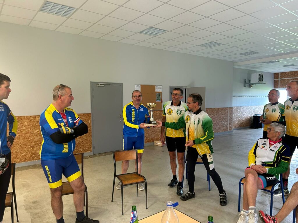 Sylvain B., Président des Cyclos des Avaloirs, profitait du verre de l’amitié pour remettre le Challenge Alain Savary au club local, lauréat du trophée 2025 pour la deuxième année consécutive.